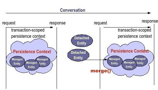 持久性上下文可以是事务范围-持久性上下文的生命'为扩展长度的交易,或-持久性上下文跨越多个交易。随着交易范围的持久化上下文,实体是“超脱”于交易结束了。